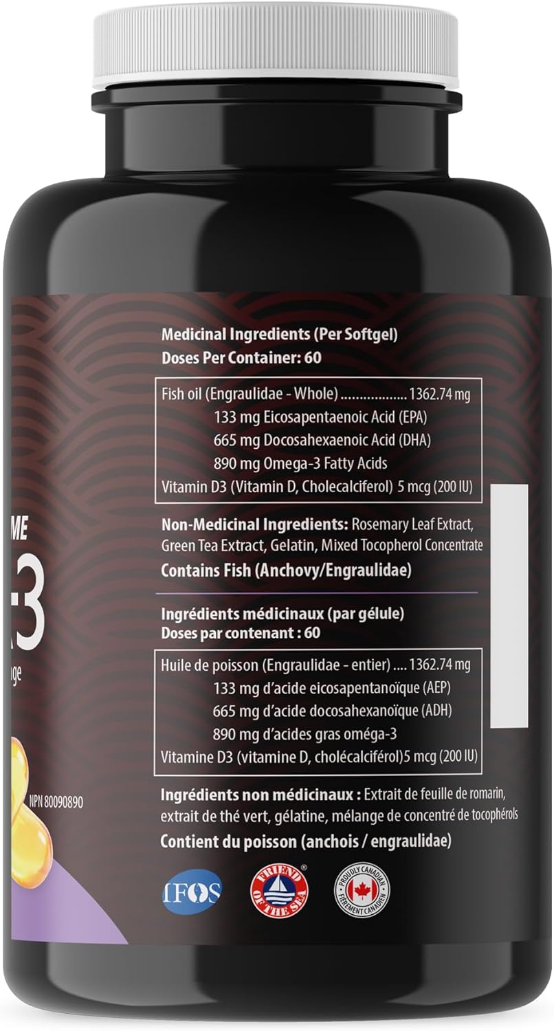 - UNCOMPROMISING QUALITY: AquaOmega ensures purity and sustainability. Our third-party-tested omega-3 with EPA and DHA fish oils is IFOS-certified and meets the highest safety standards, with responsibly sourced ingredients. Proudly made in Canada.