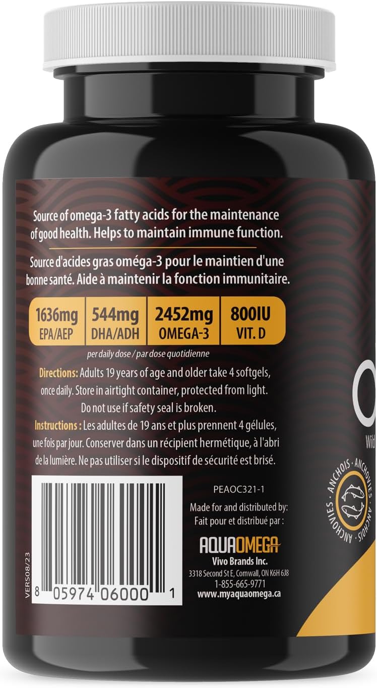 - UNCOMPROMISING QUALITY: AquaOmega ensures purity and sustainability. Our third-party tested omega 3 with vitamin D, IFOS certified, meets the highest quality and safety standards, with responsibly sourced ingredients. Proudly made in Canada.