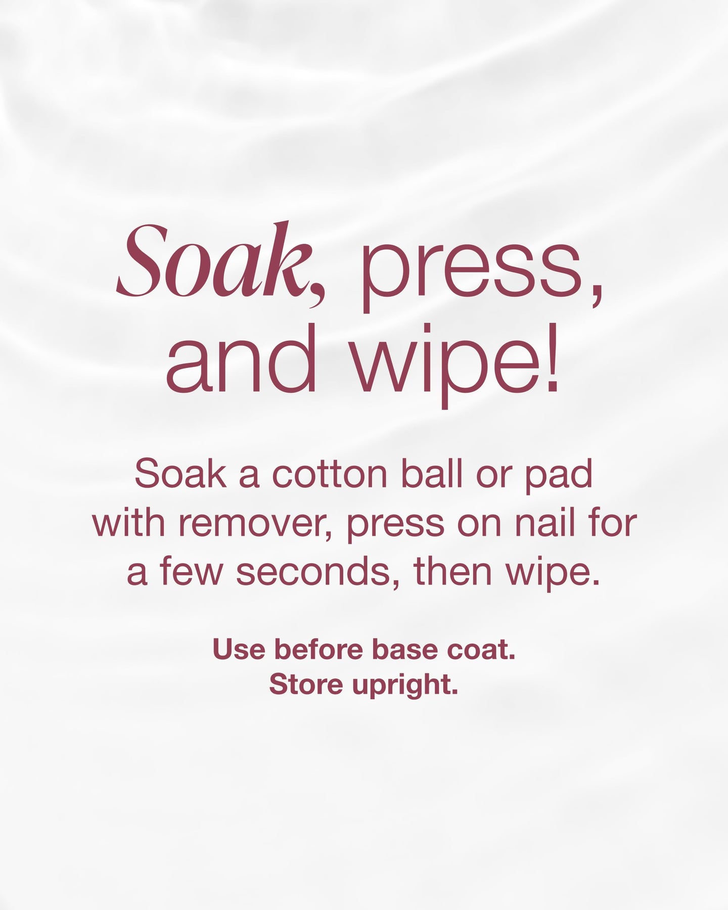 This soft and acetone-free formula easily removes even the darkest nail polish shades without drying the nail.