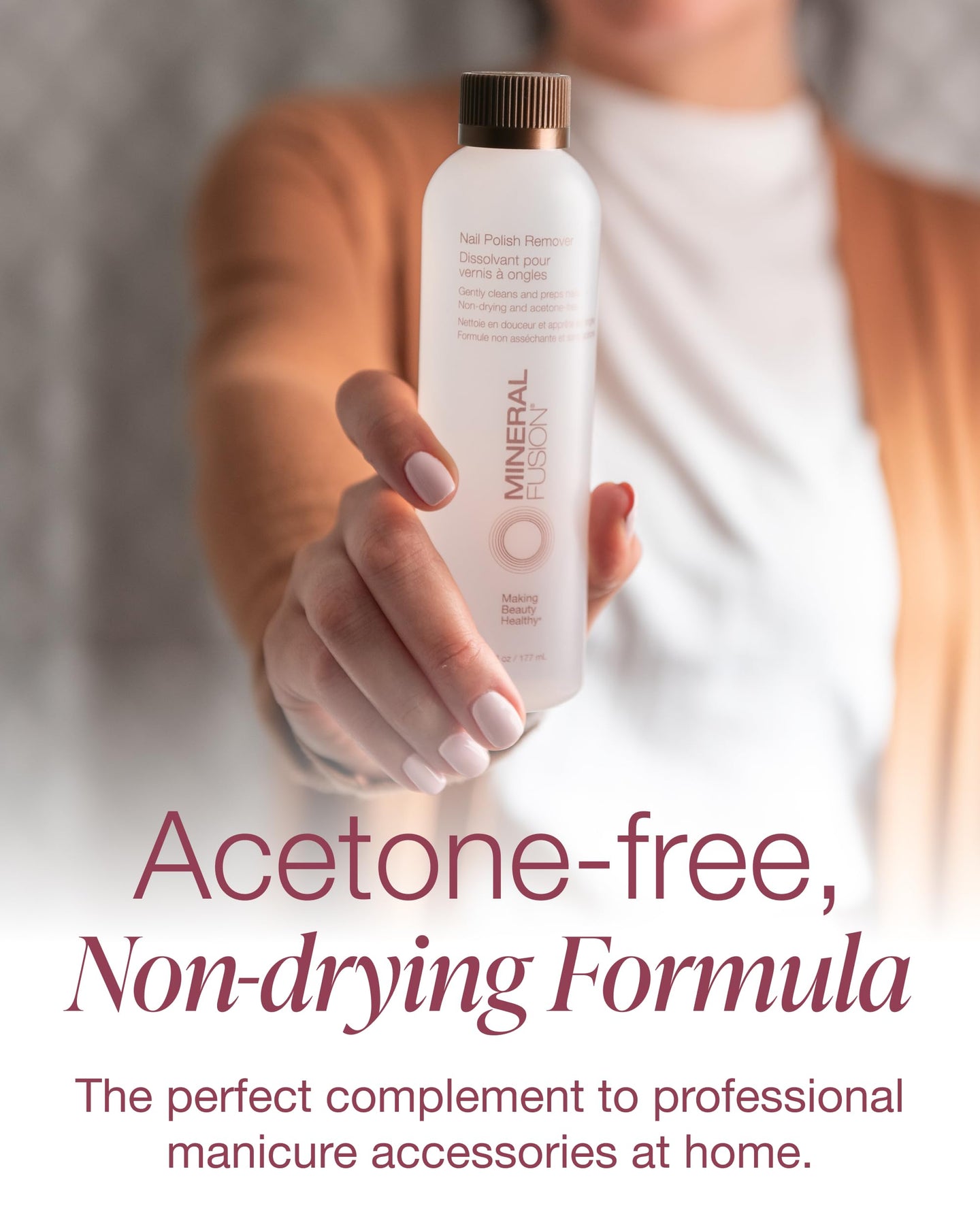 - NON-DRYING FORMULA: Our acetone-free nail polish remover removes shellac polish, regular nail polish, & Mineral Fusion Gel Polishes without stripping or overdrying nails. Not for use with salon gel polish.