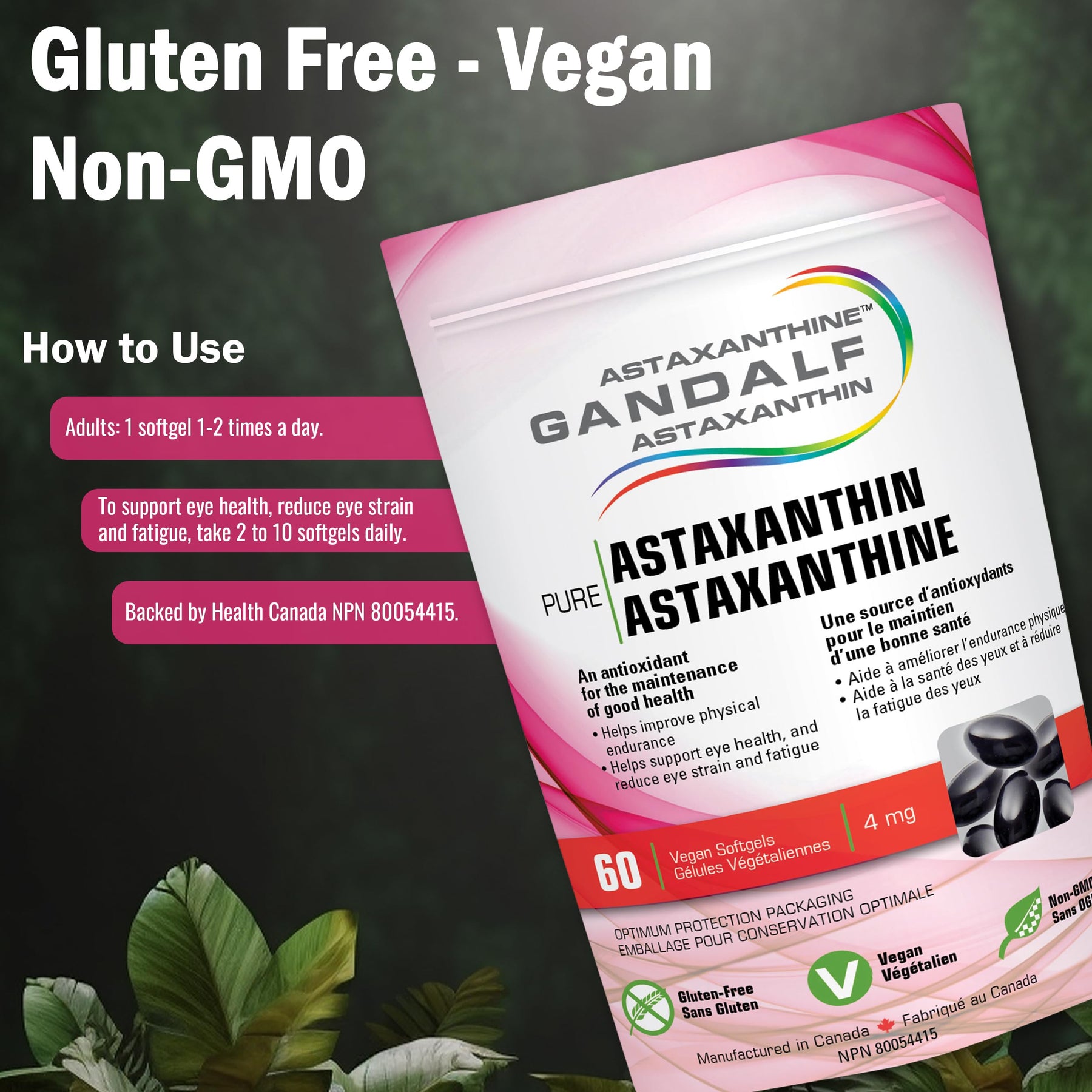Gandalf Astaxanthin 4mg, 60 Vegan Softgels 30-Day Supply - Vision & Joint Wellness Supplement, Supports Eye Comfort & Flexibility, Antioxidant Formula, GMO-Free