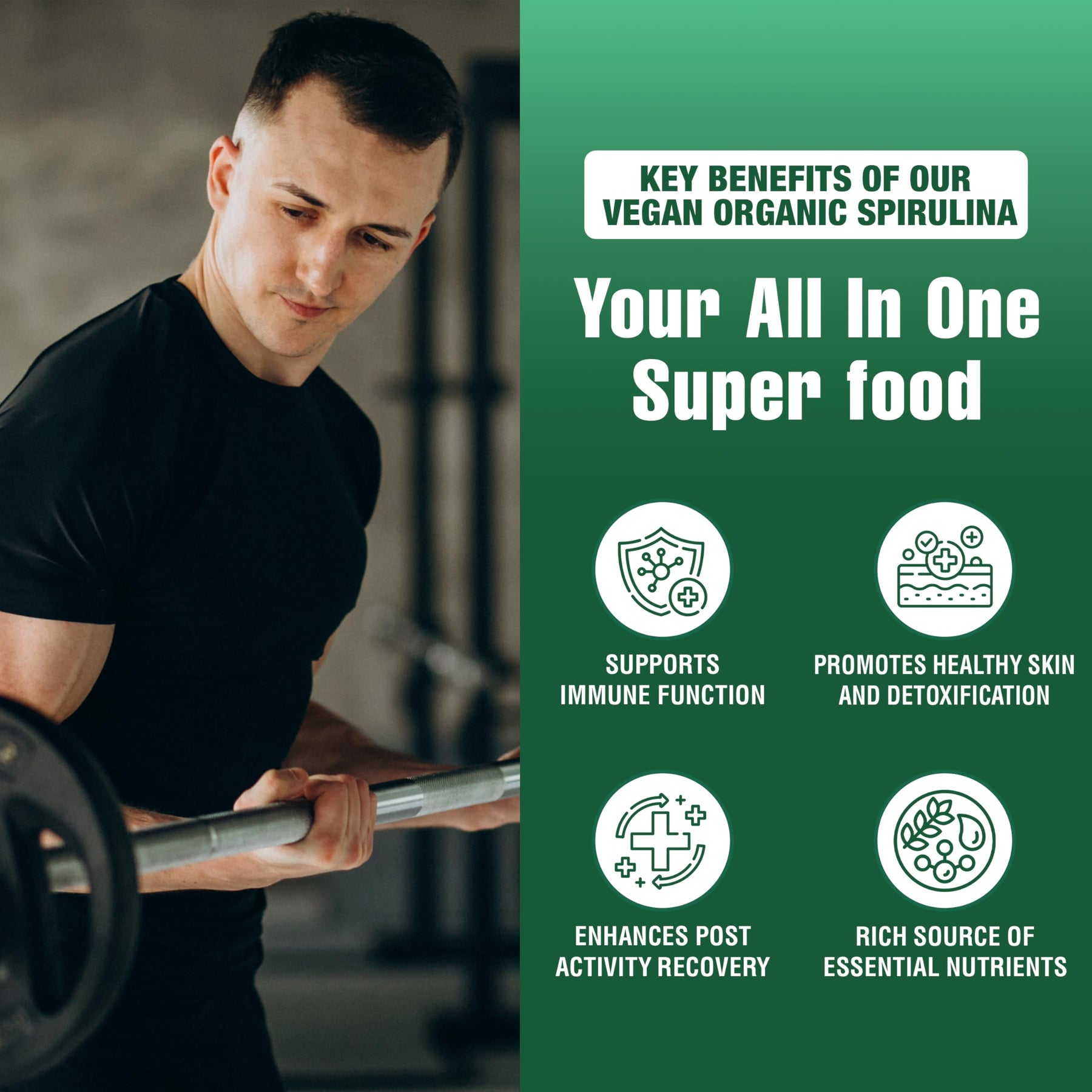 - Promote Natural Defenses: Support your natural defenses with our spirulina capsules, a valuable resource in promoting robust well-being. Abundant in antioxidants, essential amino acids, and trace minerals, these supplements support your body's natural defenses, providing comprehensive support in demanding environments. Embrace a proactive approach to supporting your body's natural resilience through the exceptional purity of your trusted spirulina companion.