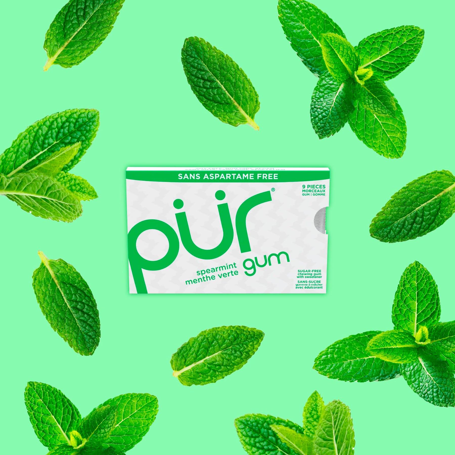 Enjoy the refreshing taste of Spearmint with PUR Gum, a guilt-free chewing experience!