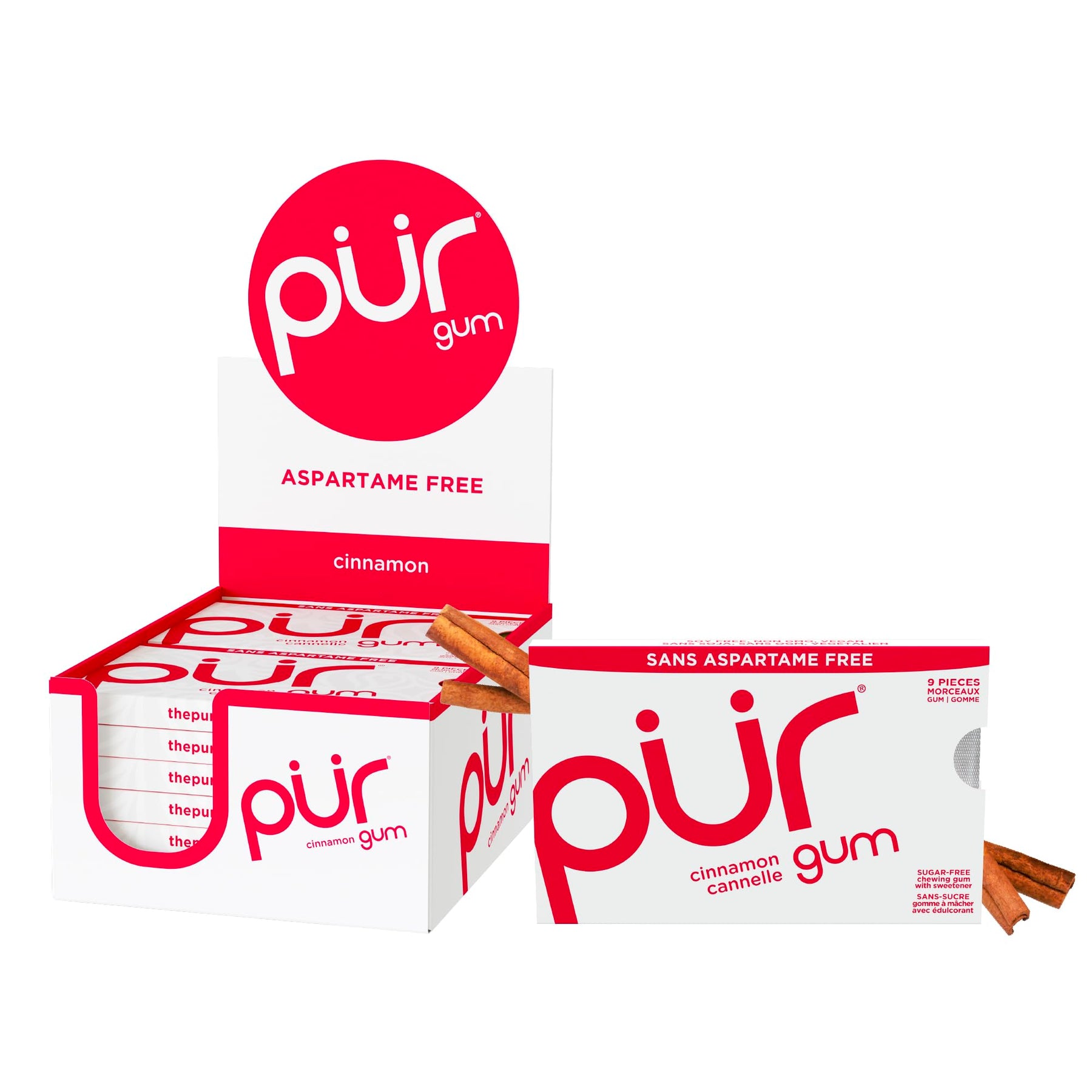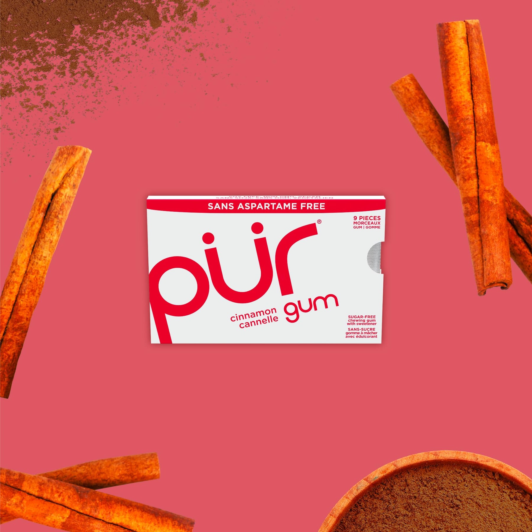 PUR Gum | Aspartame Free Chewing Gum | 100% Xylitol | Natural Cinnamon Flavoured Gum, 9 Pieces (Pack of 12)