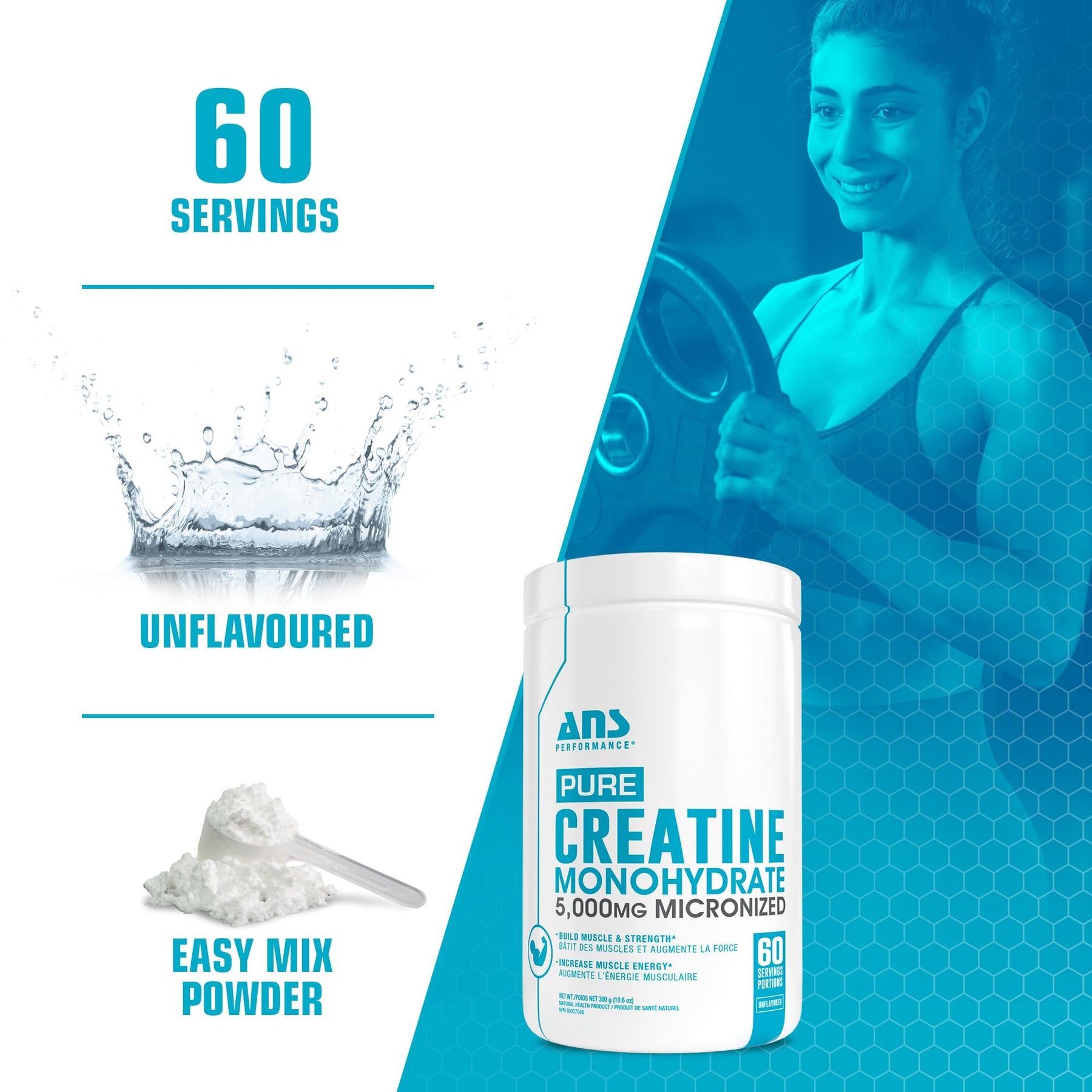 Unlock your full potential with ANS Performance Creatine Monohydrate. Experience the power of: