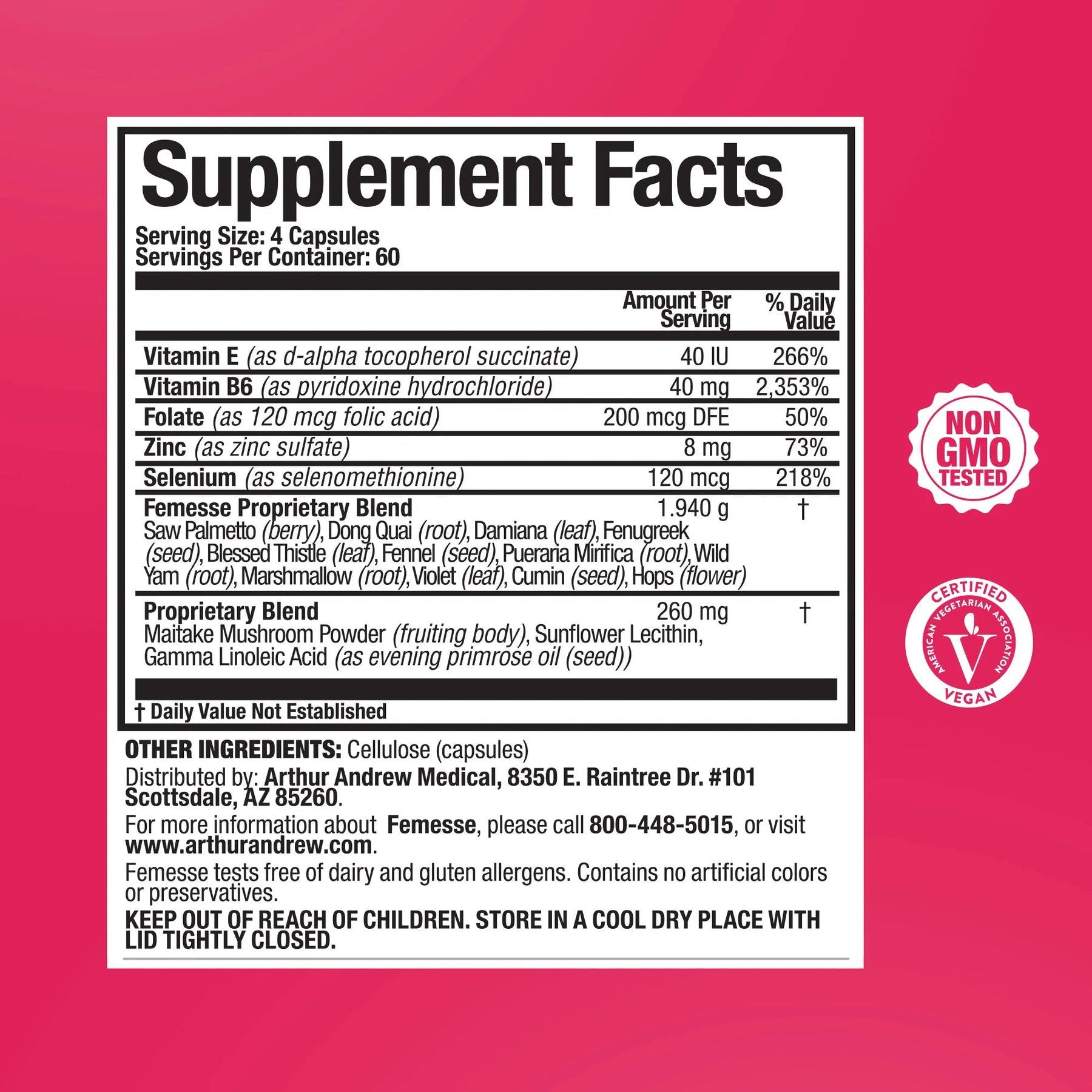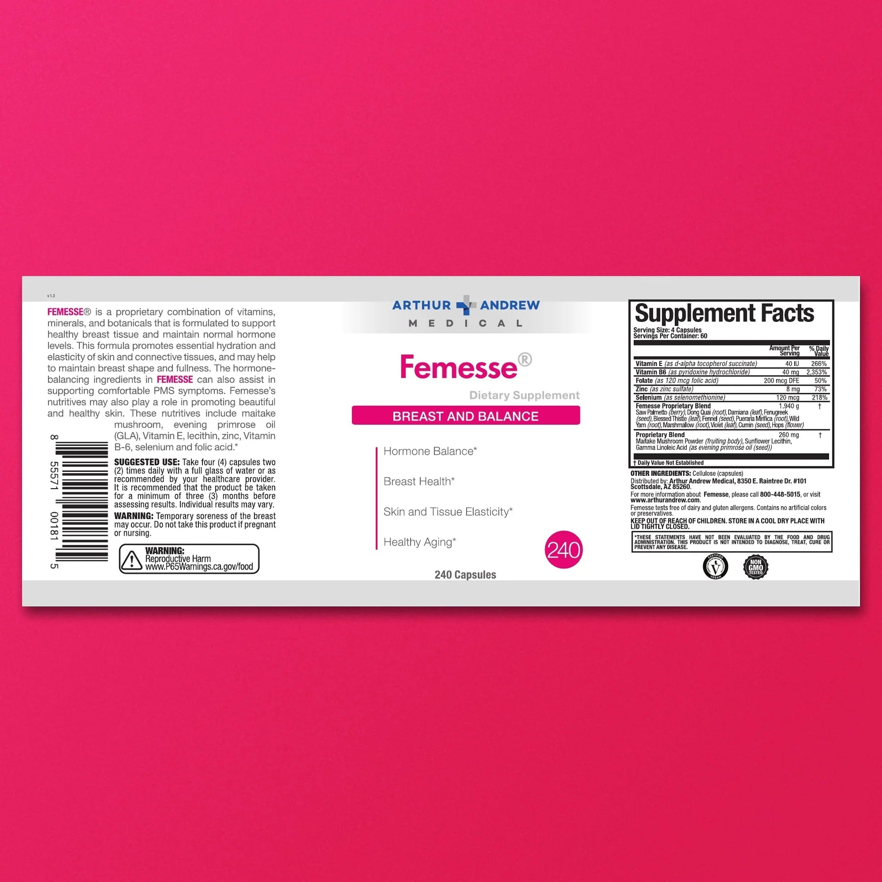 Femesse from Arthur Andrew Medical is a comprehensive blend of natural ingredients designed to support hormonal balance and overall well-being for women. This expertly formulated supplement helps to alleviate common symptoms associated with PMS, menopause, and other hormonal fluctuations, promoting a more comfortable and balanced life.
