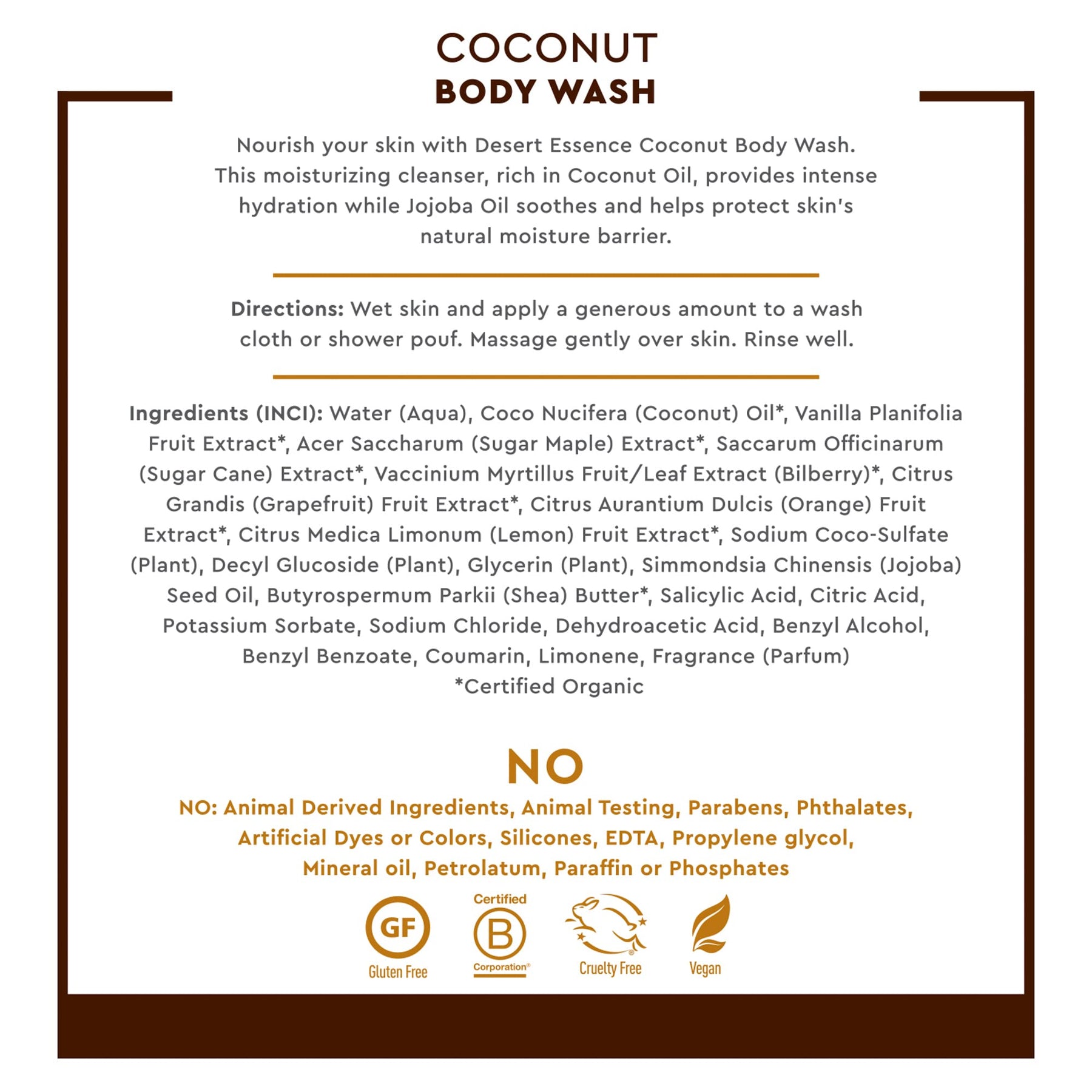 Indulge in the tropical aroma of Desert Essence Coconut Body Wash and experience these benefits: