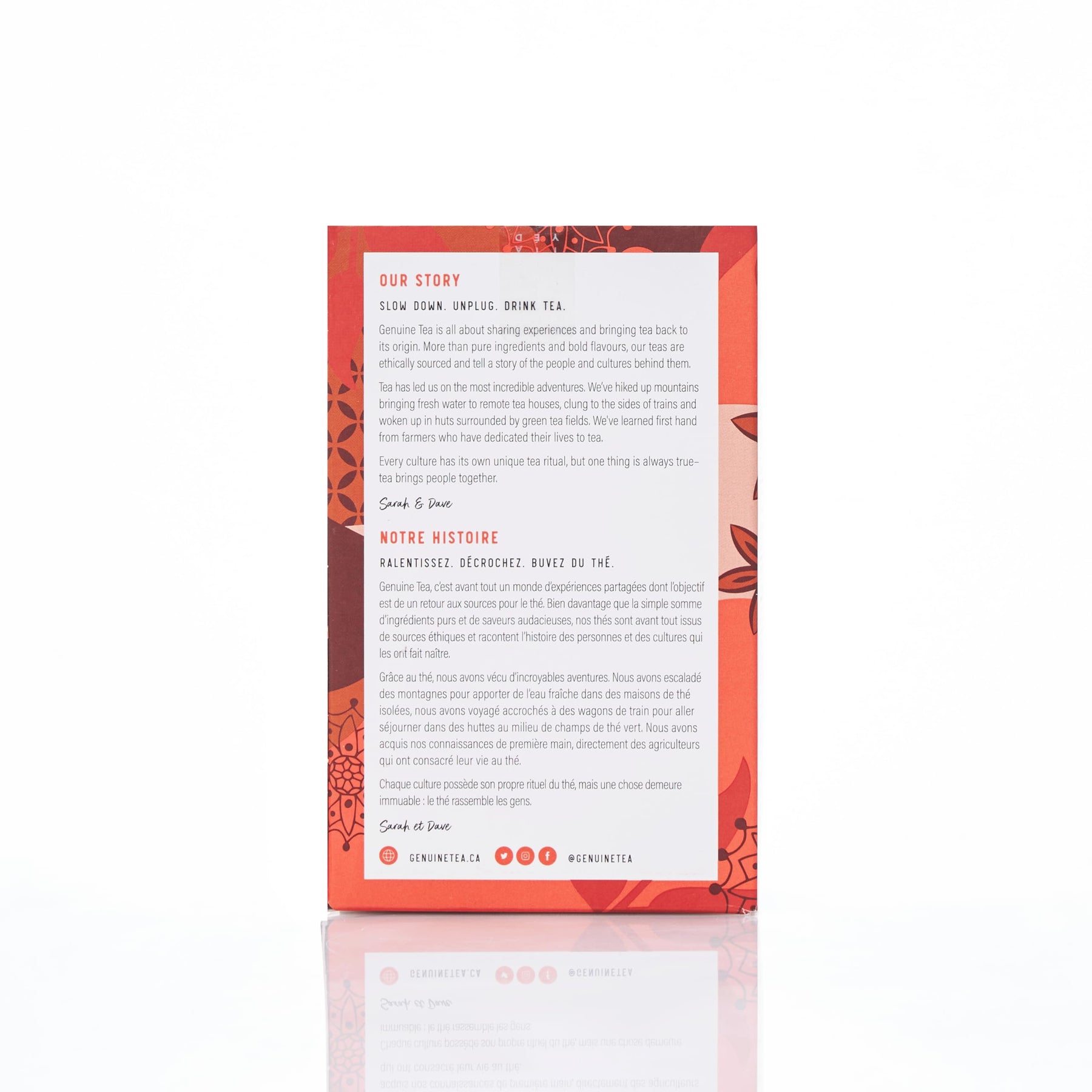 Tea in India has historically been consumed as an Ayurvedic herbal medicine. It is often mixed with local spices making a spiced tea or ‘masala chai.’ Every region has its own unique recipe starting with a malty black tea base, warming spices and a delicate sweet finish. Our Organic Masala Chai consists of whole aromatic spices and direct trade organic Assam tea. Try it as a chai latte with steamed milk!