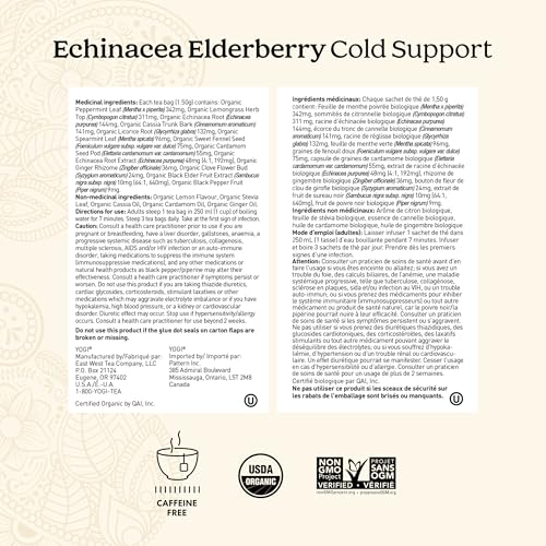- Flavor: Yogi Echinacea Elderberry Cold Support is a purposeful herbal tea with Elderberry and a hint of refreshing, Peppermint and Lemongrass