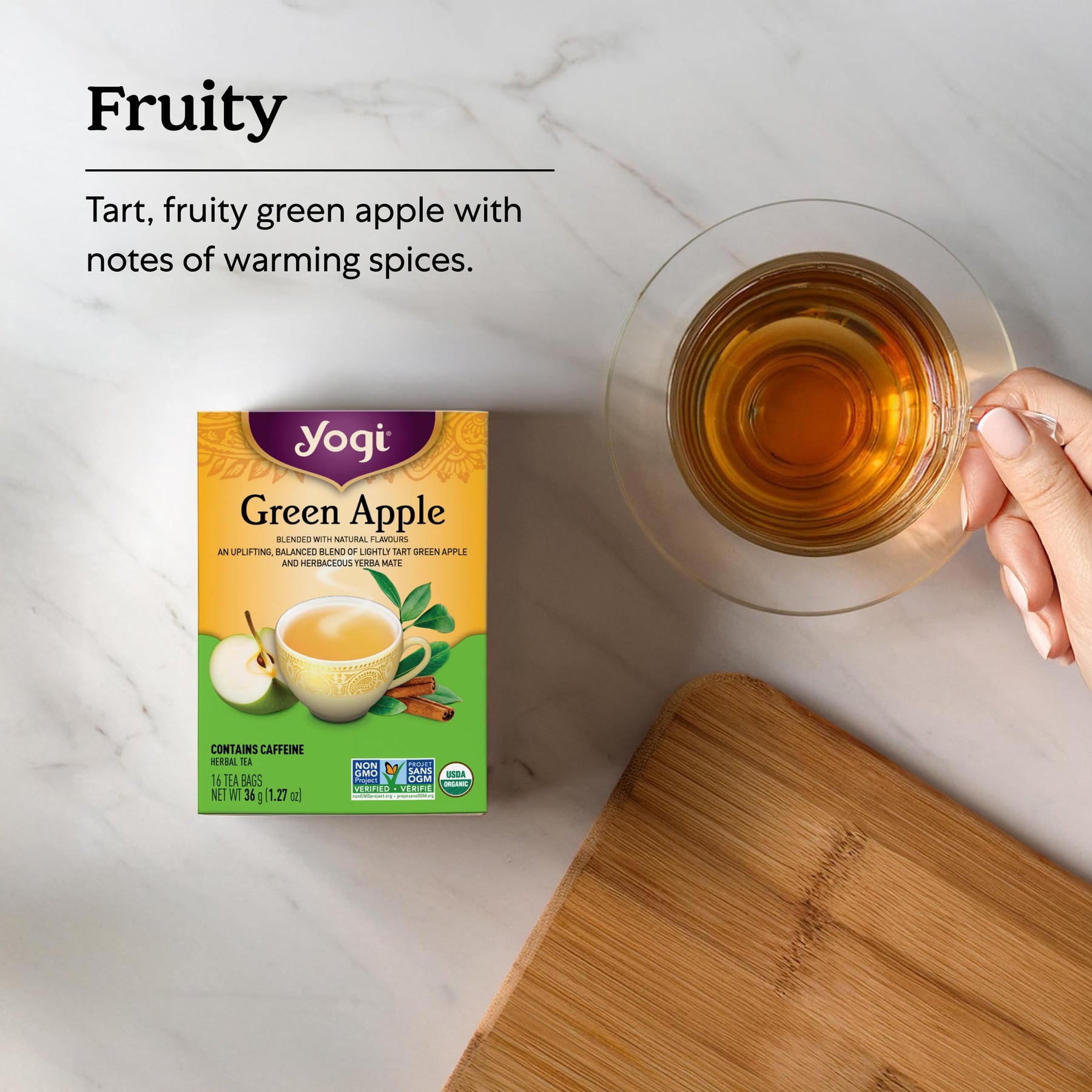 - Fruity Herbal Tea: Yogi Tea Green Apple pairs tart Green Apple and Yerba Mate with warming spices for a flavorful and balanced tea blend