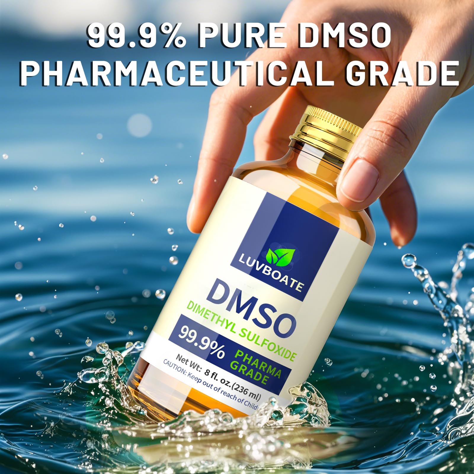 DMSO 99.9% Pharma Grade, Pure Liquid Dimethyl Sulfoxide 8 fl.oz in Glass Bottle, Non-Diluted, Low Odor