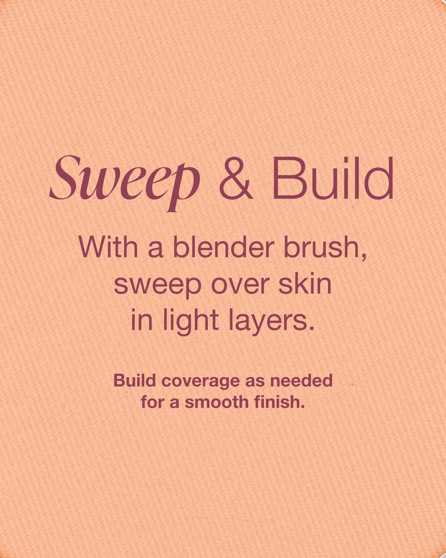 Using a powder brush, swirl into the pressed base and tap off any excess. Apply to face in light, circular motions, starting from the center and blending outwards. Build coverage as desired.