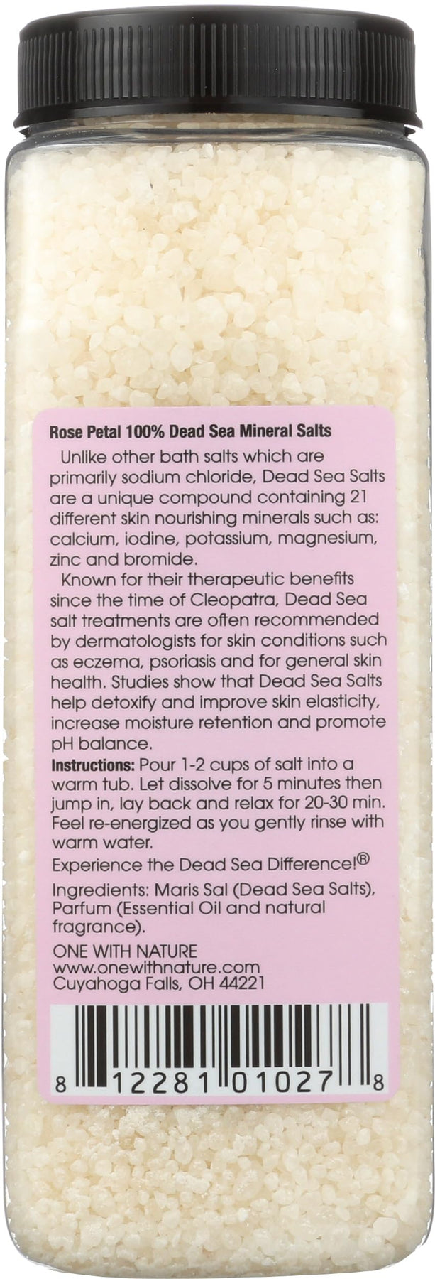 Add a generous amount of One With Nature Rose Bath Salts to warm running bath water. Allow salts to dissolve completely before entering the bath. Soak for 20-30 minutes to allow the minerals to fully absorb into the skin. Rinse with clean water after soaking.