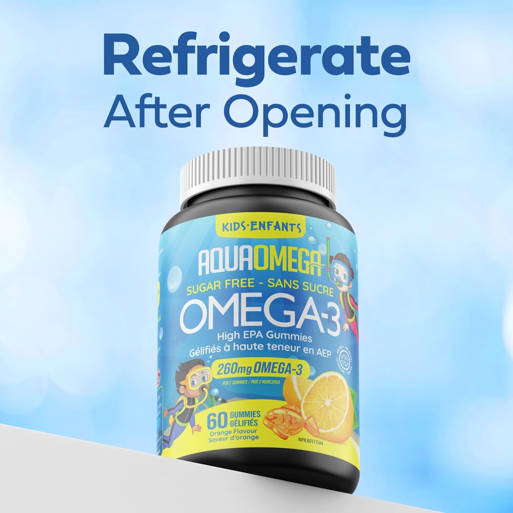AQUAOMEGA High EPA Omega-3 for Kids: Fueling Healthy Minds & Bodies! Support your wellness with AquaOmega High EPA Omega-3 for Kids, a premium omega 3 kids gummies with DHA supplement designed to deliver superior purity, potency, and performance. Healthy gummies packed with a high concentration of EPA, providing the best support for your little one. From ocean to bottle, we are fully transparent about the ingredients in our products. We regularly visit the fishing grounds from which our products are sourced, ensuring our intimate knowledge of the origin and quality of our ingredients. We’re proud to share that the sustainably-caught fish are processed the same day they’re captured, preventing oxidation of any kind. Why Choose Aqua Omega? - Kids fish oil omega 3 supplements gummies manufactured in a 5-star IFOS-certified facility using highly advanced purification methods - Full third-party testing is conducted on all fishoil and finished products - Omega3 fish oil for kids with purity levels exceed 94% - Omega 3 fish oil backed by exhaustive research, testing, and technological innovation - Certified Friend of the Sea (FOS) - Kids omega 3 gummies flavoured with natural fruit concentrates—no artificial ingredients - EPA and DHA Omega 3 supplement contain no fillers - All fish oil supplement are manufactured, processed, blended, flavoured, and packaged in Canada Experience the AquaOmega Difference Our mission is to craft the best omega3 supplements with vitamin D gummies for kids on the market, becoming a global leader by using high-quality, all-natural ingredients to deliver pure and effective omega 3 gummies for kids. Make the smarter choice for premium Omega-3—choose AquaOmega Omega-3 High EPA for Kids today!