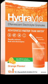 Rapidly rehydrate with Hydralyte Electrolyte Powder Sticks! These clinically formulated electrolyte powders are designed to help manage dehydration by quickly replenishing lost electrolytes. Convenient and portable, Hydralyte's Electrolyte Powder Sticks instantly dissolve to make a hypotonic electrolyte solution. Hydralyte is clinically formulated to contain the correct balance of glucose and electrolytes for the prevention and relief of dehydration. All of the hydrating electrolyte drinks are based on the World Health Organization criteria for effective rehydration. Hydralyte works by replacing fluid and electrolytes lost due to vomiting, diarrhea, fever and heavy sweating. Dehydration can be the result of sickness such as colds or fever, heat exhaustion from sun and heat exposure, or physical exertion during vigorous exercise. The symptoms of dehydrations can include dizziness, nausea, a dry mouth or extreme thirst, confusion, and headaches including migraines. Hydralyte helps you manage dehydration symptoms, and is great to keep in your gym bag or travel carry-on for wherever your adventures take you.