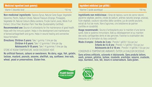 As a potent antioxidant, Vitamin C supports immune health, wound healing, connective tissue formation, and strong bones, teeth, and gums. Formulated for everyone in the family aged 3 and up, these fruity, plant-based gummies are vegetarian- and vegan-friendly, made without animal gelatin, artificial flavours, colours, sweeteners, common allergens, or preservatives.