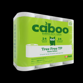 Caboo Bamboo 2 ply Toilet Tissue is tree-free toilet tissue, made from 100% bamboo & sugarcane fibres, and provides a sustainable alternative to conventional paper made from trees. It is biodegradable and whitened with H202, a natural alternative to bleach. Includes 24 rolls with 300 sheets per roll.