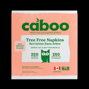 Caboo Bamboo Table Napkins are made with bamboo and sugarcane which are sustainable alternatives to using trees to make paper. Includes 250 napkins.