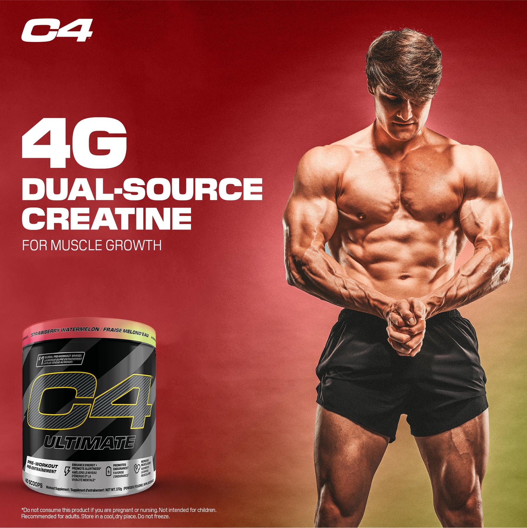 Cellucor C4 Ultimate Pre Workout Powder - Sugar Free Preworkout Energy with 300mg Caffeine and Creatine for Men & Women - Strawberry Watermelon, 20 Servings