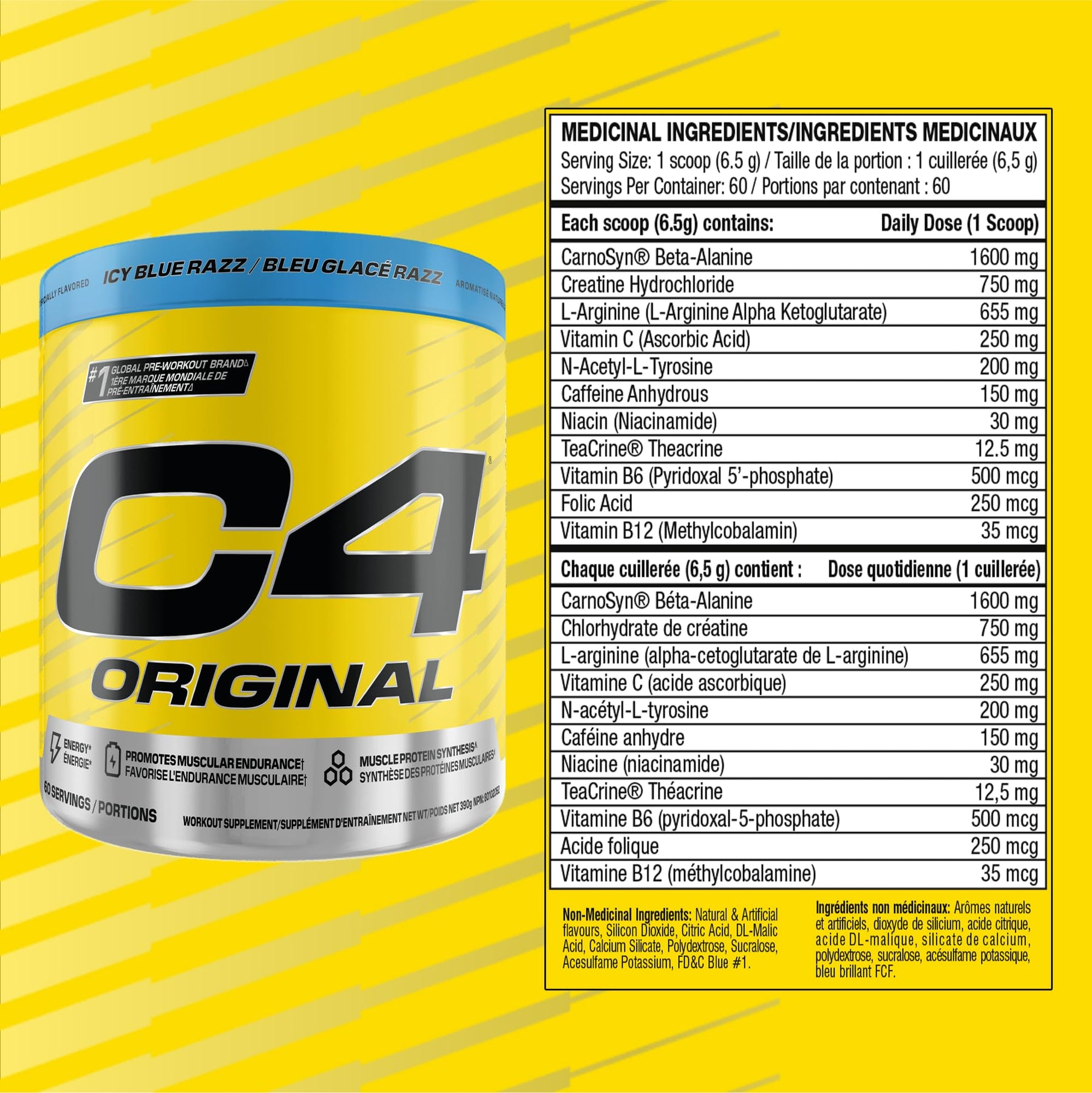 Cellucor C4 Original Pre Workout Powder - Sugar Free Preworkout Energy for Men & Women - 150mg Caffeine, Beta Alanine, Creatine - Icy Blue Razz, 60 Servings